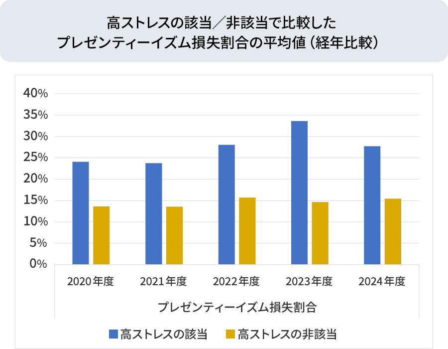 高ストレス者率は以前と比較して改善しつつあるものの、従業員の「こころイキイキ」を実現するため、引き続き高ストレス者率の改善とプレゼンティーイズムの改善を目指します。