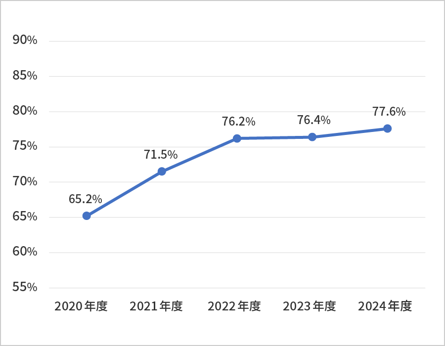 有給休暇取得率 | 76.2% | 76.4% | 77.6% | |